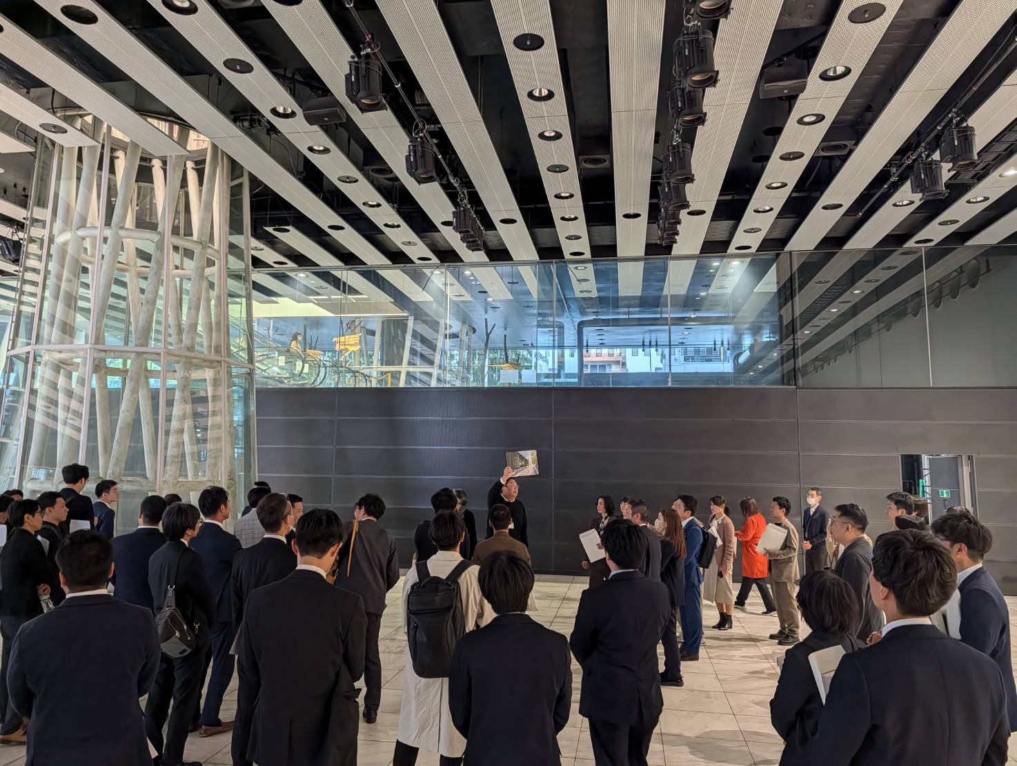 伊東氏の建築としても有名で市民中心に年間100万人が訪れるメディアテークの機能と知見を説明いただき、その後内部視察を職員の方々に行っていただきました